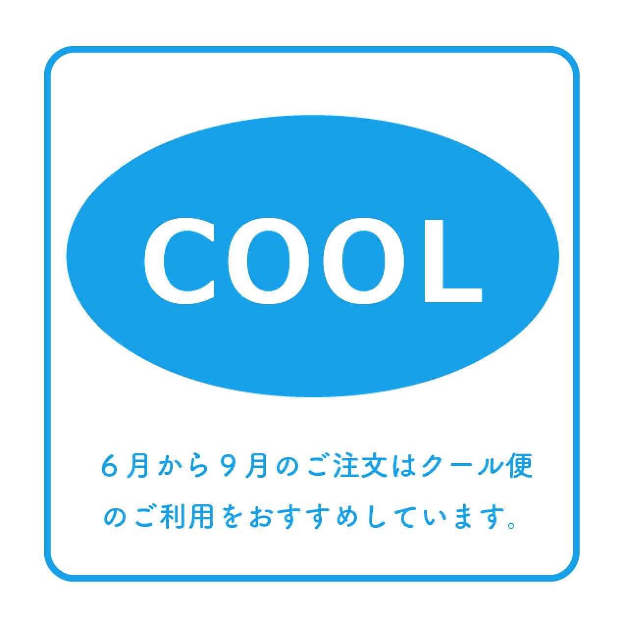 取り扱いの商品は配送の際、高温下におかれることによる品質劣化の可能性があります。夏季(6〜9月)のご注文はクール便のご利用をおすすめしております。